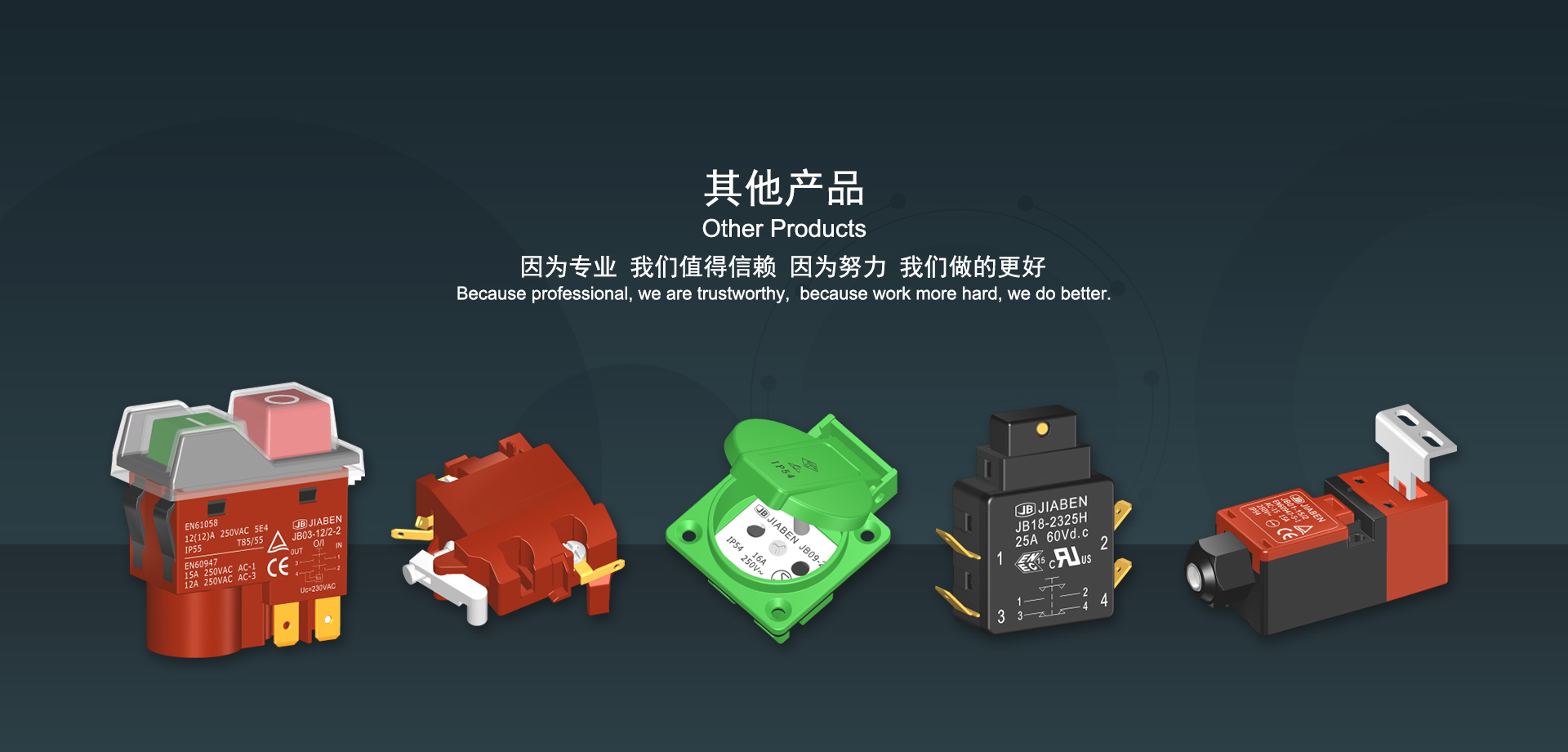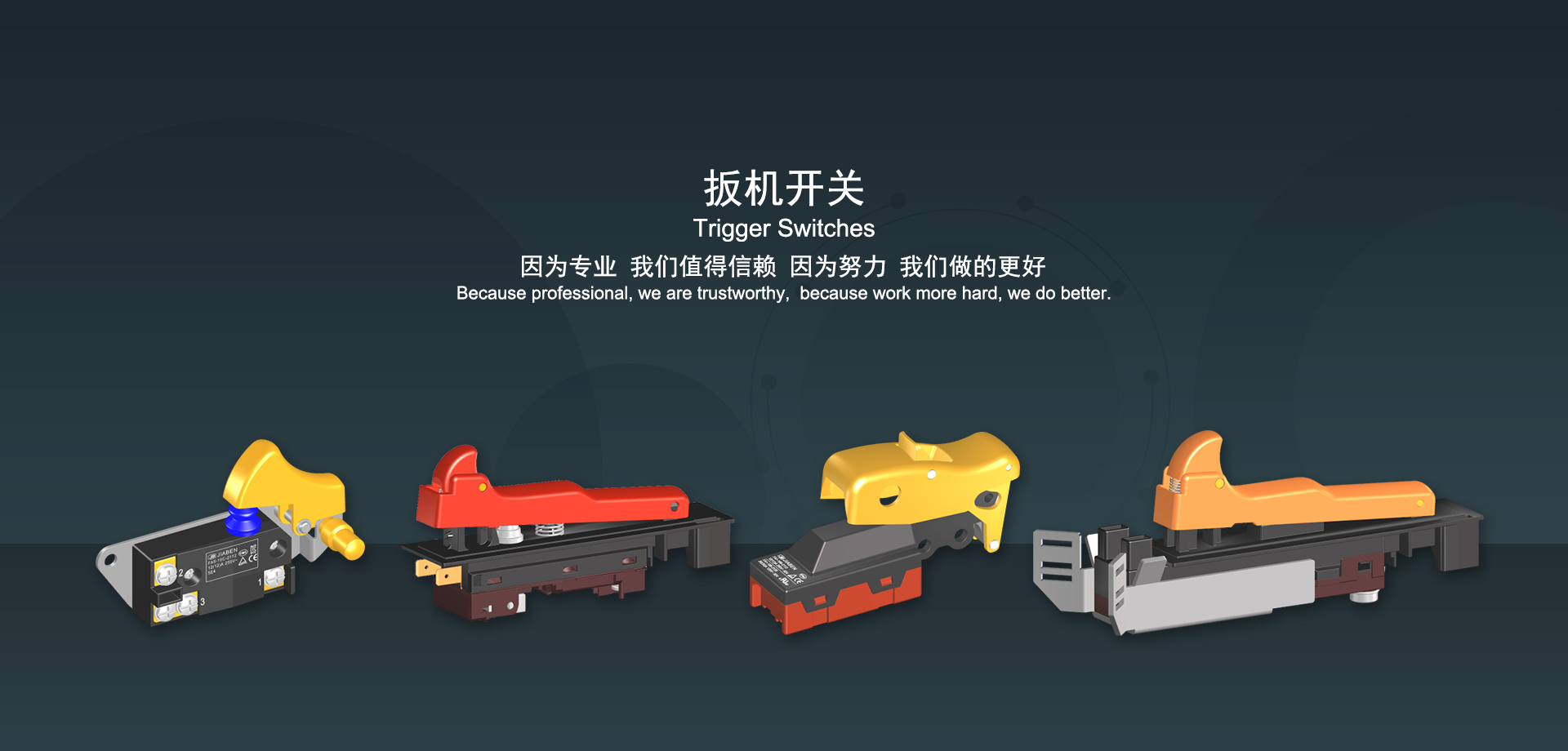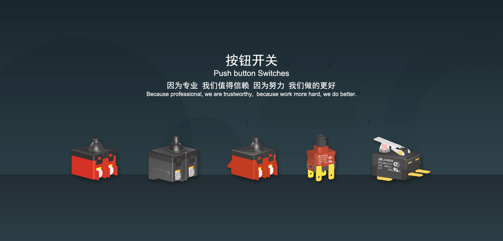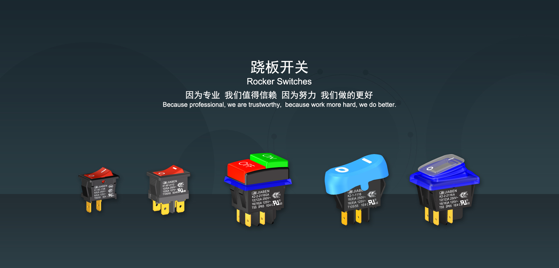 浙江佳奔電子有限公司始建于1986年,坐落于浙江省樂清市虹橋鎮(zhèn)東電子信息產(chǎn)業(yè)園內(nèi),現(xiàn)有職工700多人,資產(chǎn)總額超3億元。公司主要經(jīng)營“JIABEN”牌微動開關、蹺板開關、按鈕開關、扳機開關、調(diào)速開關和電位器開關等各類交、直流器具開關和各類交、直流線路板模塊等產(chǎn)品,主要應用于交、直流電動工具、電動園林工具、清潔器具、家用電器和小型機床等行業(yè),是集產(chǎn)品設計、研發(fā)、制造、銷售和服務于一體的國家高新技術(shù)企業(yè)。JIABEN was founded in 1986, located in East Electronic Information Industry Park, Hongqiao Town, Yueqing City, Zhejiang Proviance, existing staff more than 700 peoples, more than 300 million RMB worth of assets. Company is mainly engaged in "JIABEN" brand Micro Switch, Rocker Switch, Push-button Switch, Trigger Switch, Speed Regulating Switch, Potentiometer Switch and other kinds of appliance switch and all kinds of AC or DC circuit board module, such as more than 100 series, 8000 kinds of models of products, mainly used in AC or DC Power-tools, Power Gardening Tools, Cleaning Appliances, Household Appliances and Small Machine Tool and other industries, is the collection product design, research and development, manufacturing, sales and service in one of the national high and new technology enterprise.